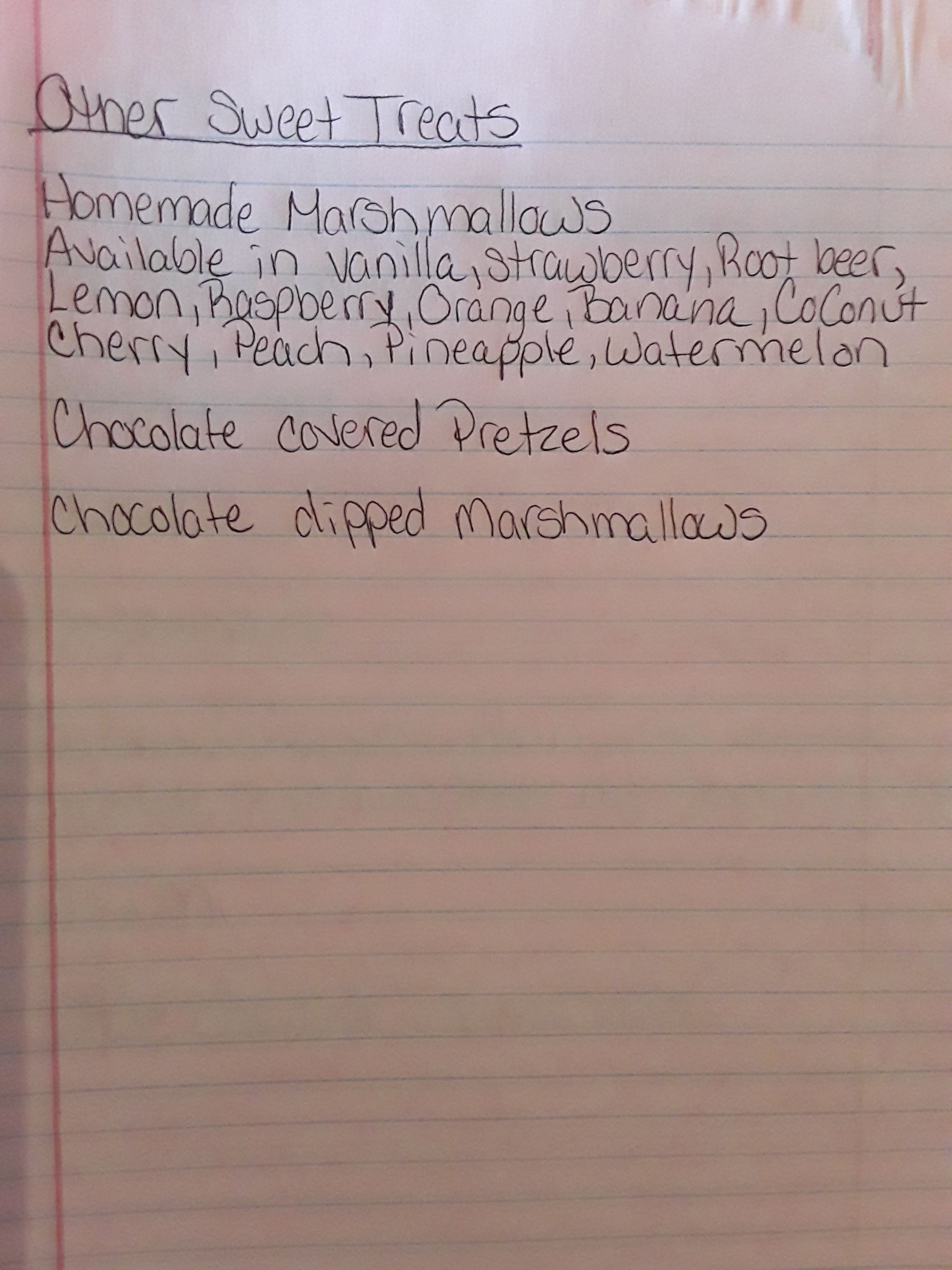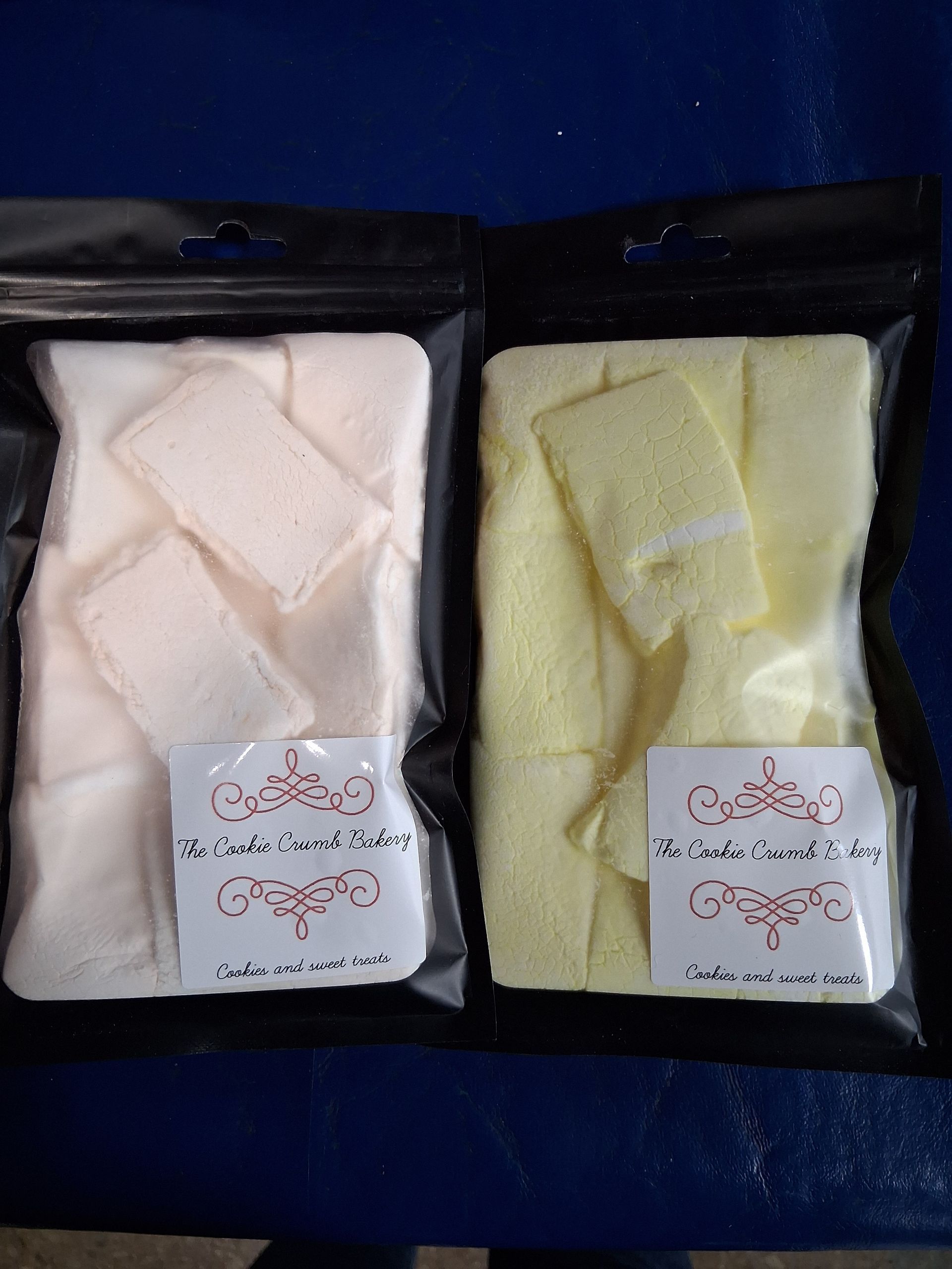 Homemade Marshmallows are $4.00/ pkg (each pkg is approx .25 lbs or 11 peices)